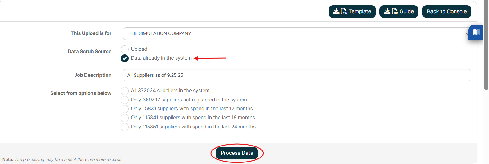If you’d like to refresh your supplier list and run an updated data enrichment, you can do so at no additional cost. Simply go to the Data Enrichment Console and follow the steps outlined below.