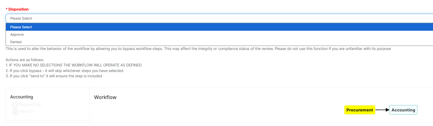 - Reject – Sends the supplier into a rejection disposition with appropriate notes